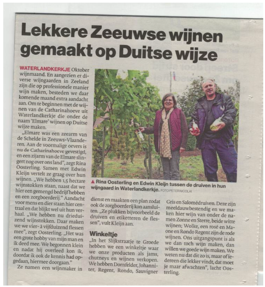 Lekkere Zeeuwse wijnen (artikel PZC) op de catharinahoeve
