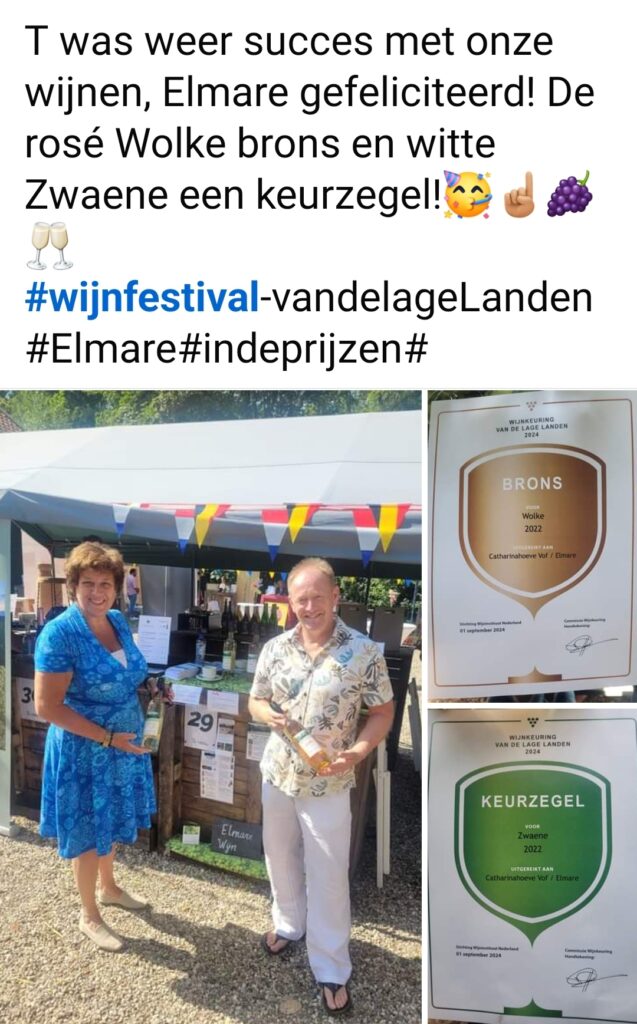 Tijdens de Nederlandse 𝗢𝗽𝗲𝗻 𝗪𝗶𝗷𝗻𝗴𝗮𝗮𝗿𝗱𝗱𝗮𝗴𝗲𝗻 kun je een bezoek brengen aan de wijngaard op zaterdagmiddag 16-9 van 12.00u. tot 18.00 uur. De entree is gratis. Je kunt een wandeling maken met een routekaartje, er is een speurtocht voor kinderen en een proeverij van de Elmare wijnen en fruitproducten.